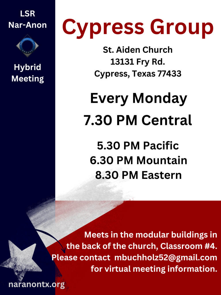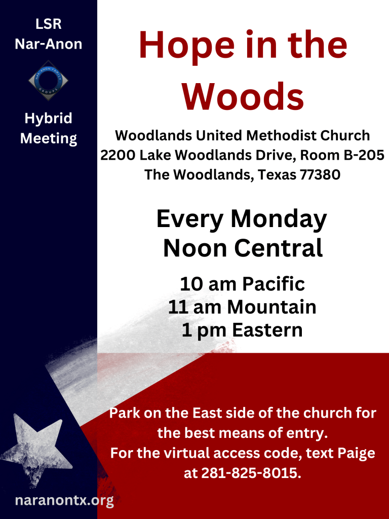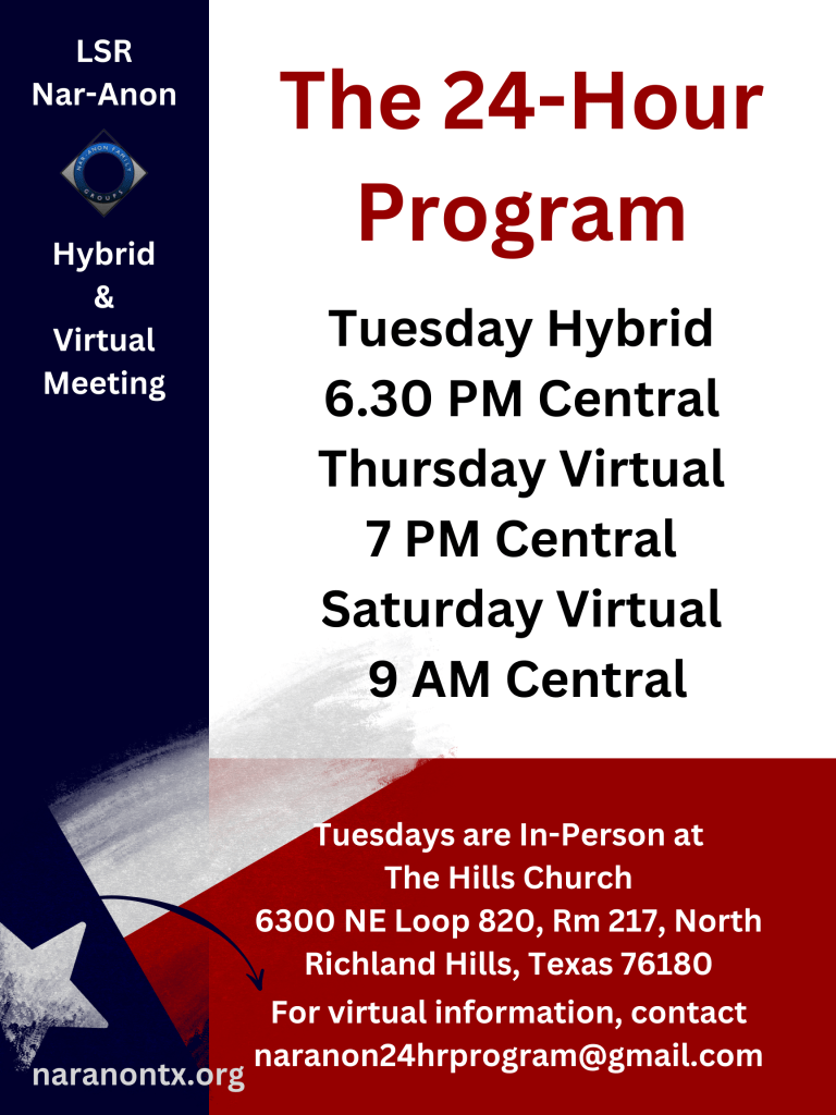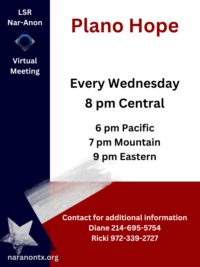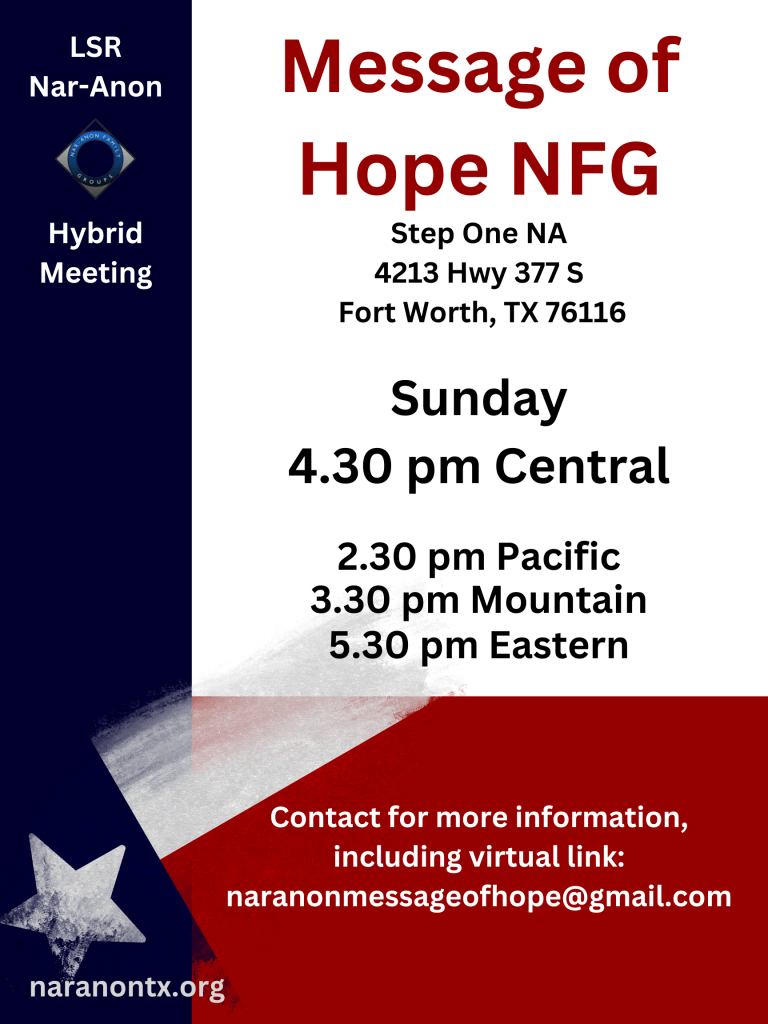 Visit nar-anon.org/virtual-english to find registered virtual meetings in English.