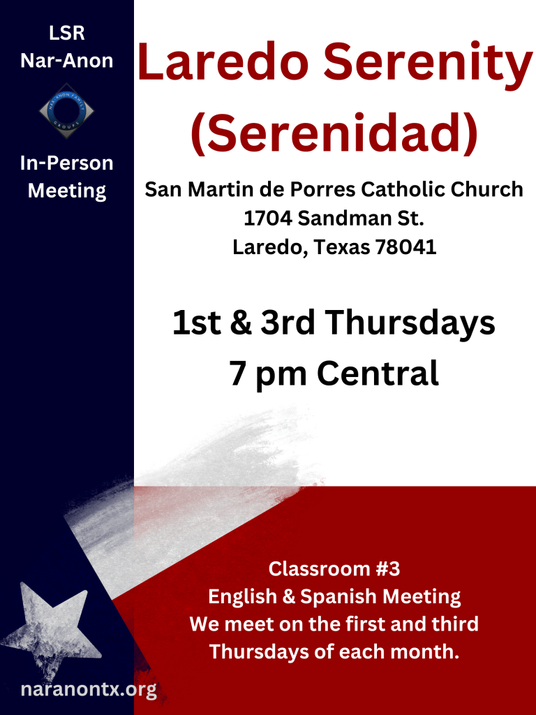 ¿Quieres encontrar una reunión virtual en español? Visite https://www.nar-anon.org/virtual-spanish para encontrar reuniones virtuales registradas en español.